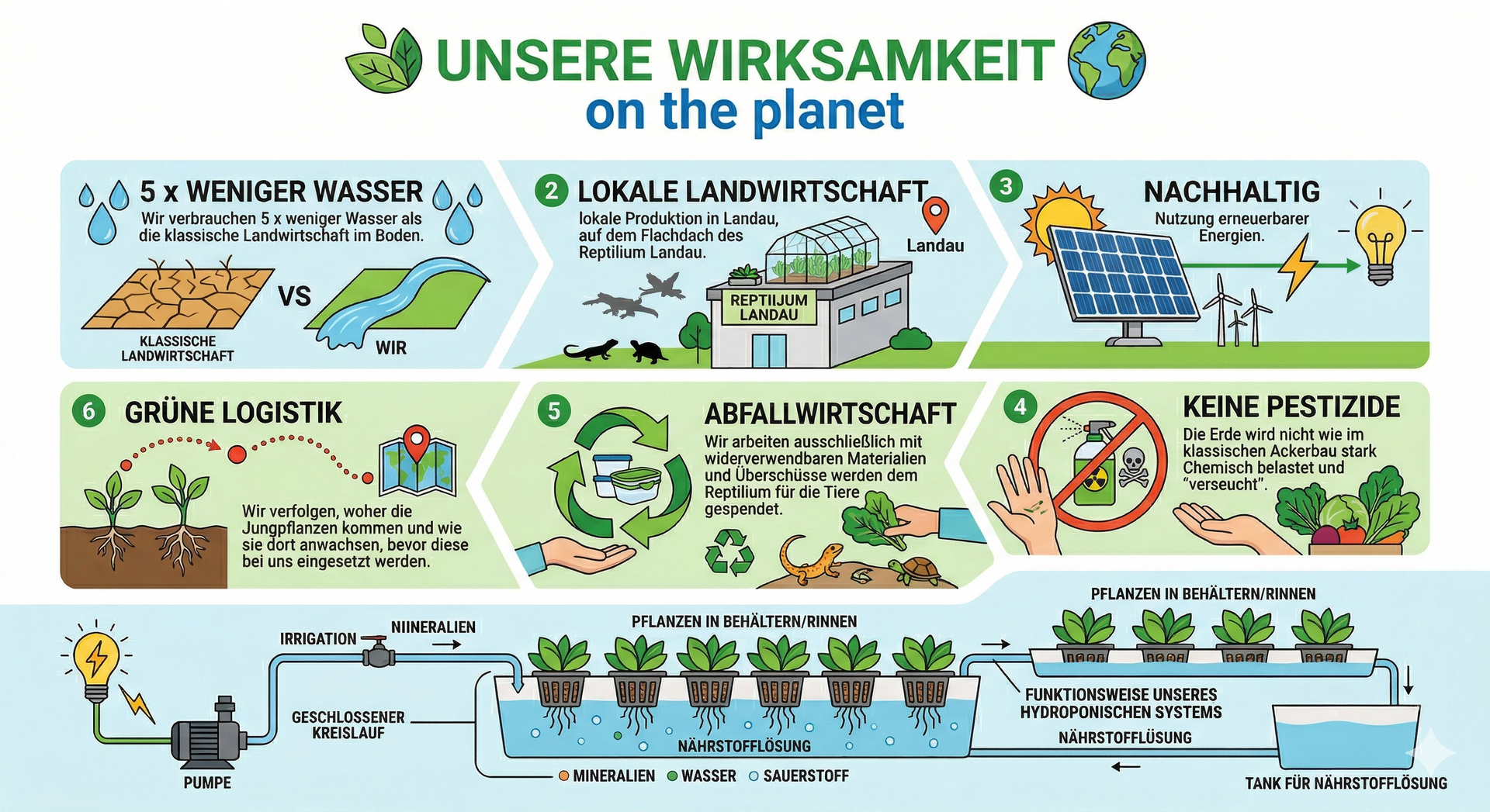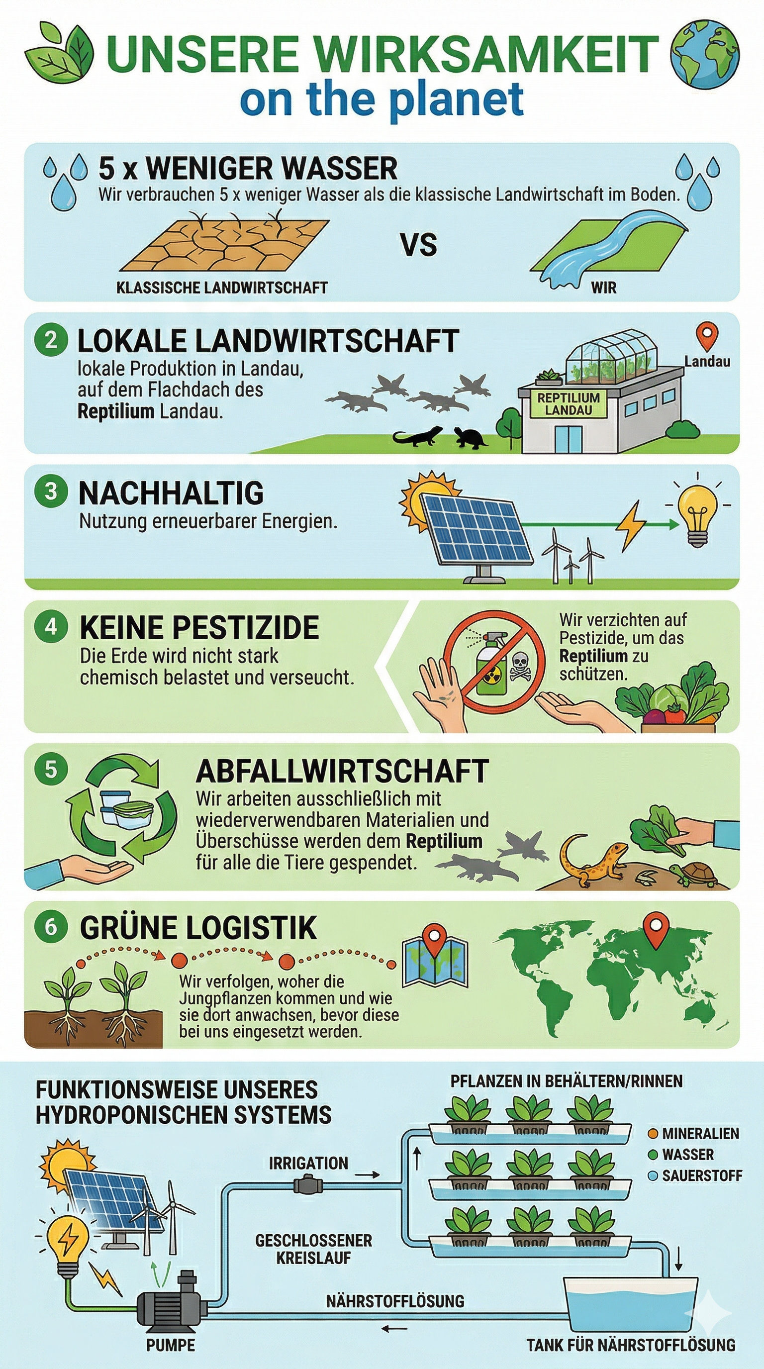 Wir arbeiten ausschließlich mit widerverwendbaren Materialien und Überschüsse werden dem Reptilium für die Tiere gespendet